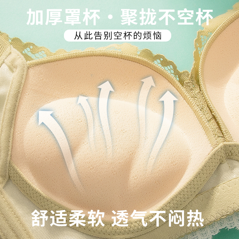 乳胶内衣女小胸聚拢收副乳防下垂加厚款文胸蕾丝无痕无钢圈胸罩