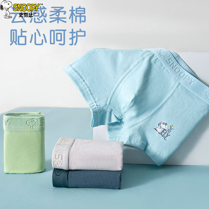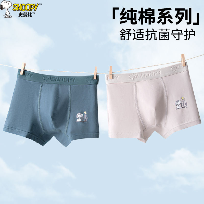 史努比儿童内裤男童宝宝纯棉四角裤透气无痕中大童平角可爱短裤头