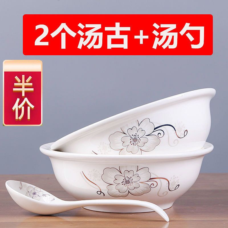 特价1/4个加厚汤碗大号陶瓷碗 简约创意景德镇餐具汤古汤勺碗家用