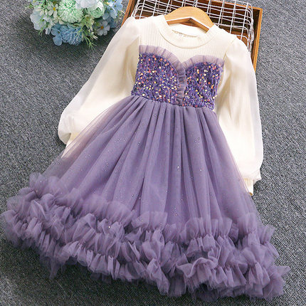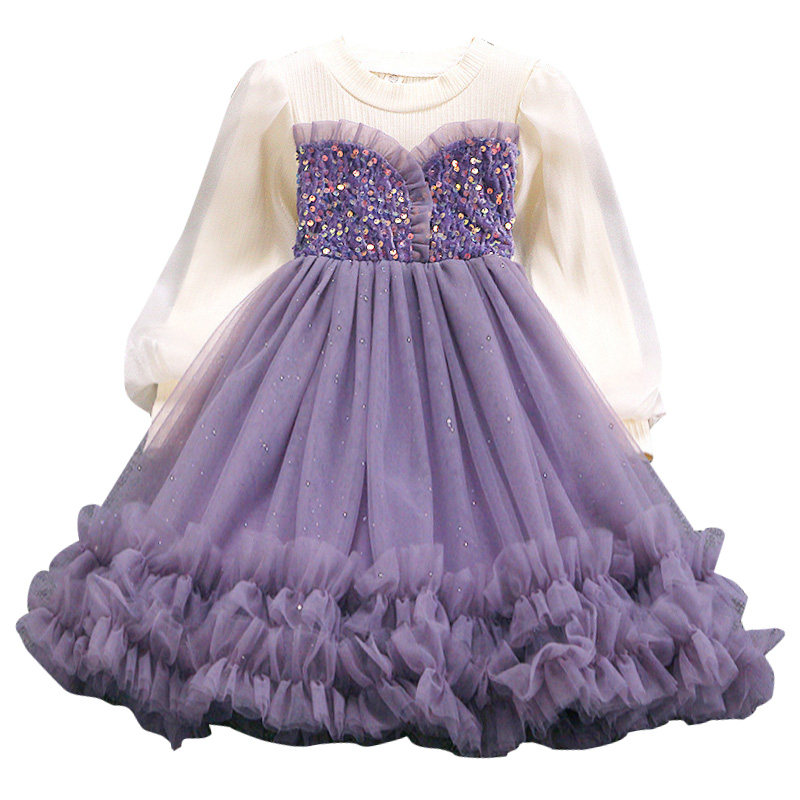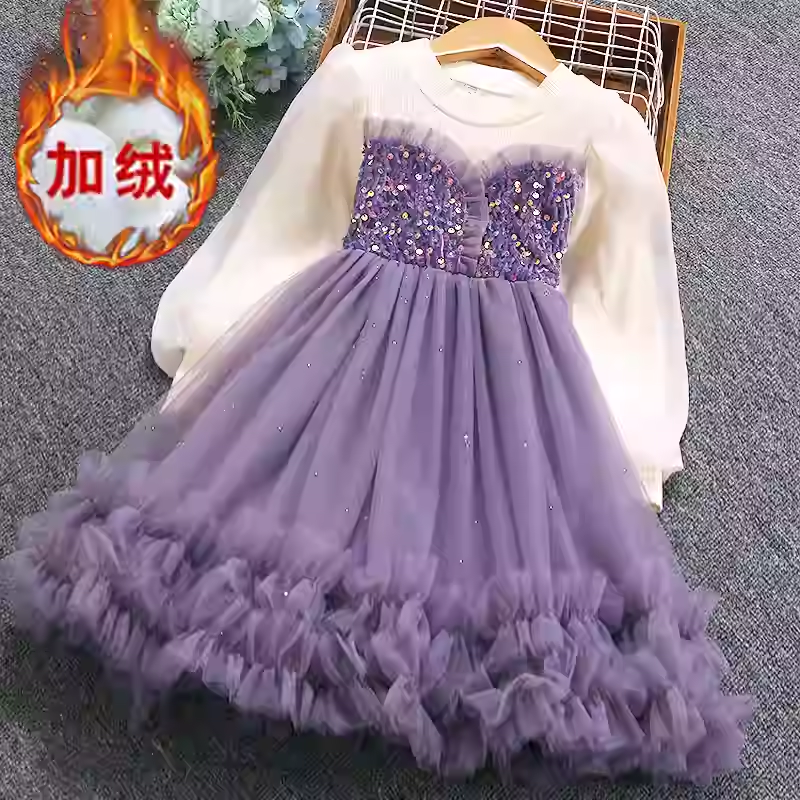 女童紫色连衣裙儿童生日蓬蓬裙子洋气纱裙子小女孩公主裙2025春季