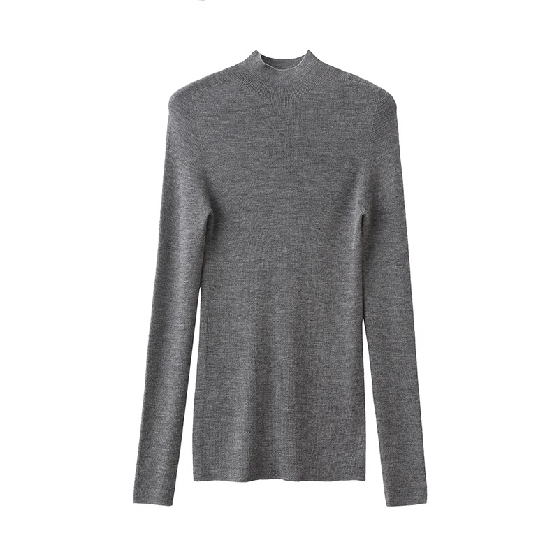 法式灰色半高领针织衫女秋冬新款内搭羊毛薄款打底衫中领气质毛衣