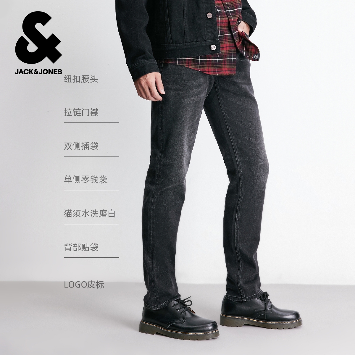 vq区绫致杰克琼斯男冬季修身牛仔裤弹力百搭经典深灰牛仔舒适长裤