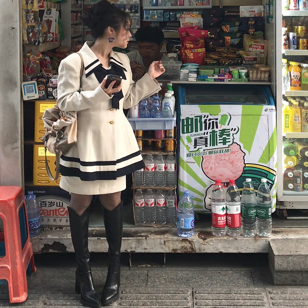 致卡萝自制-旧事美人-复古撞色灰米色西装半身裙套装