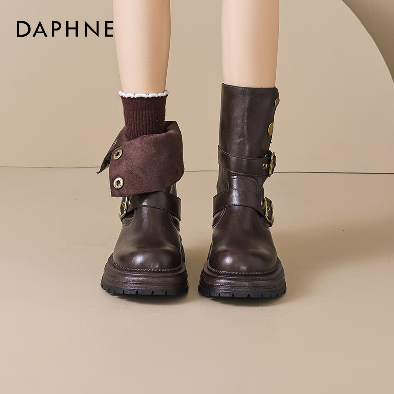 达芙妮美拉德马丁靴女士2025冬季新款骑士靴加绒小短靴西部牛仔靴