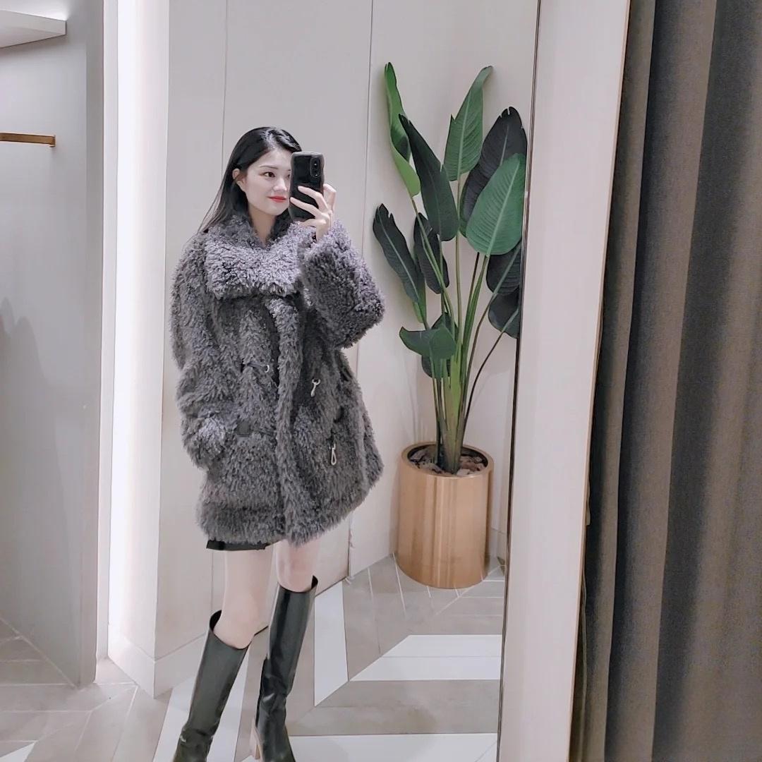 2H4G208折DAZZLE地素国内正品代购2023冬深灰色卷毛大衣吊牌4699