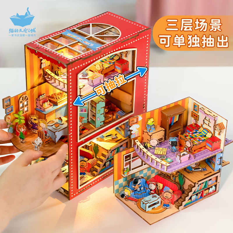 猫的天空之城拼装书立diy小屋史努比的百变小屋立体积木拼图模型