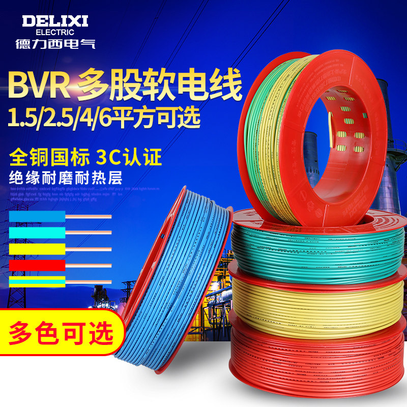 德力西电气电线1.5/2.5/4/6平方 家装BVR多芯100米软线铜芯线电线
