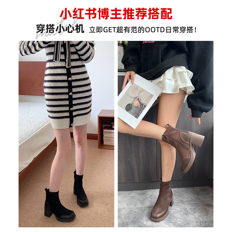 大东简约风高跟粗跟时装靴