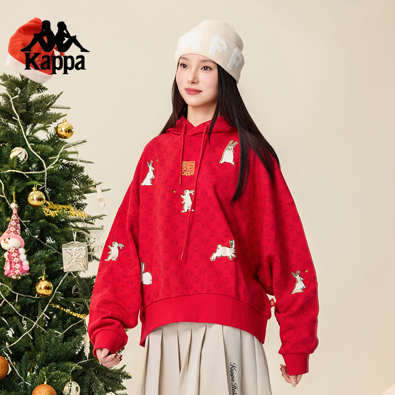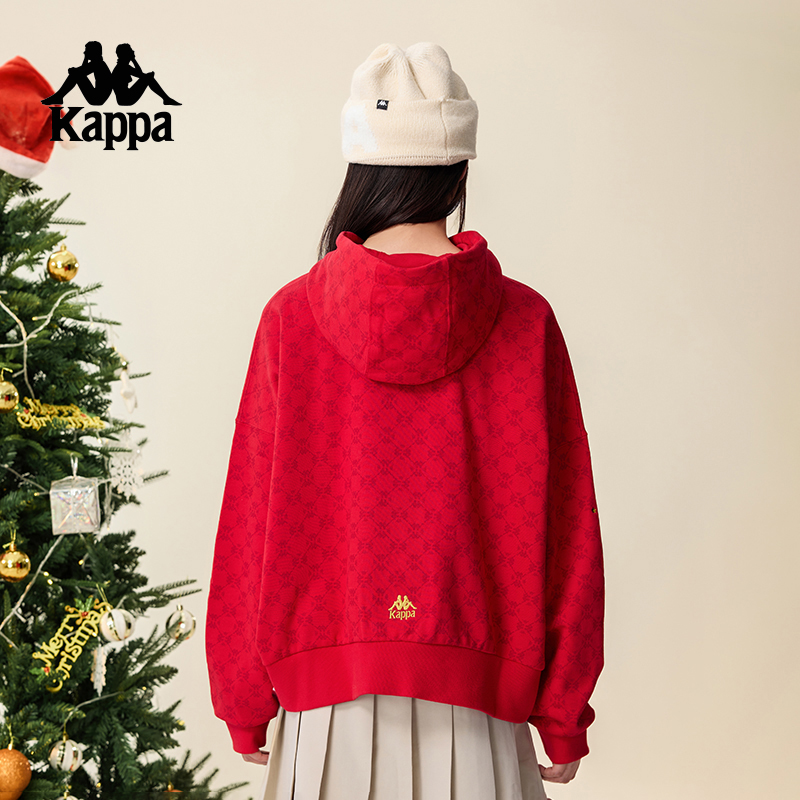 Kappa卡帕新年红色连帽休闲卫衣女士秋季百搭针织长袖上衣圣诞风