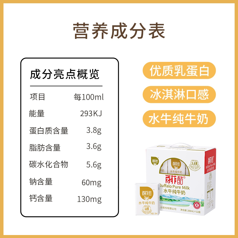 百菲酪水牛纯牛奶3.8g200ml*12盒早餐奶礼盒装广西奶高钙国货整箱