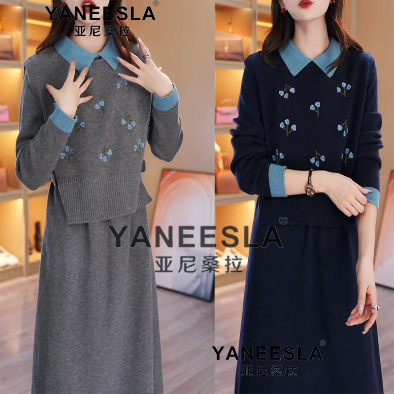 两件套针织连衣裙女中长款秋冬毛衣长裙2024新款韩版减龄打底裙