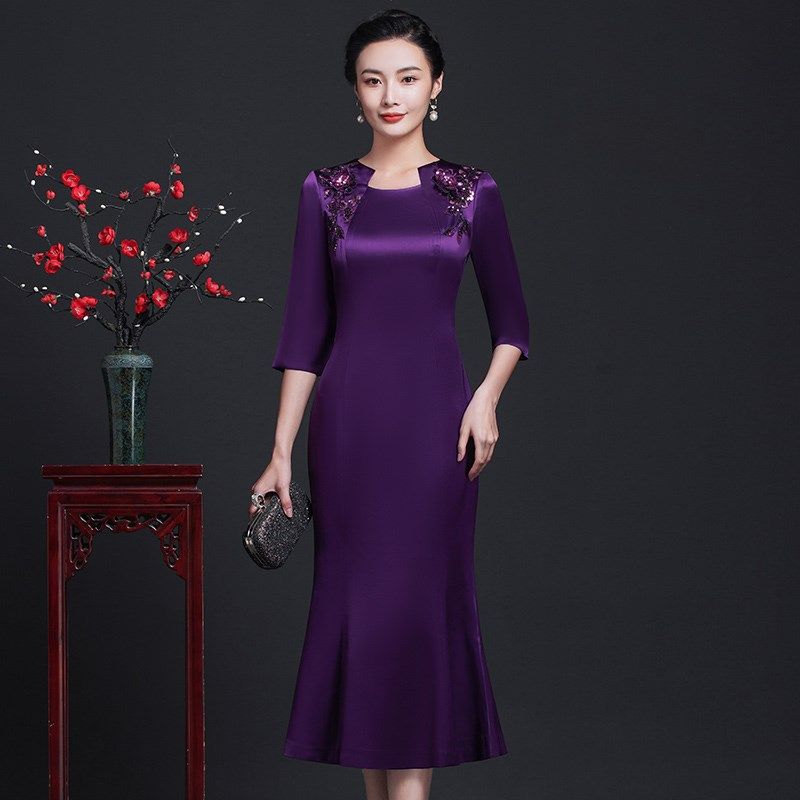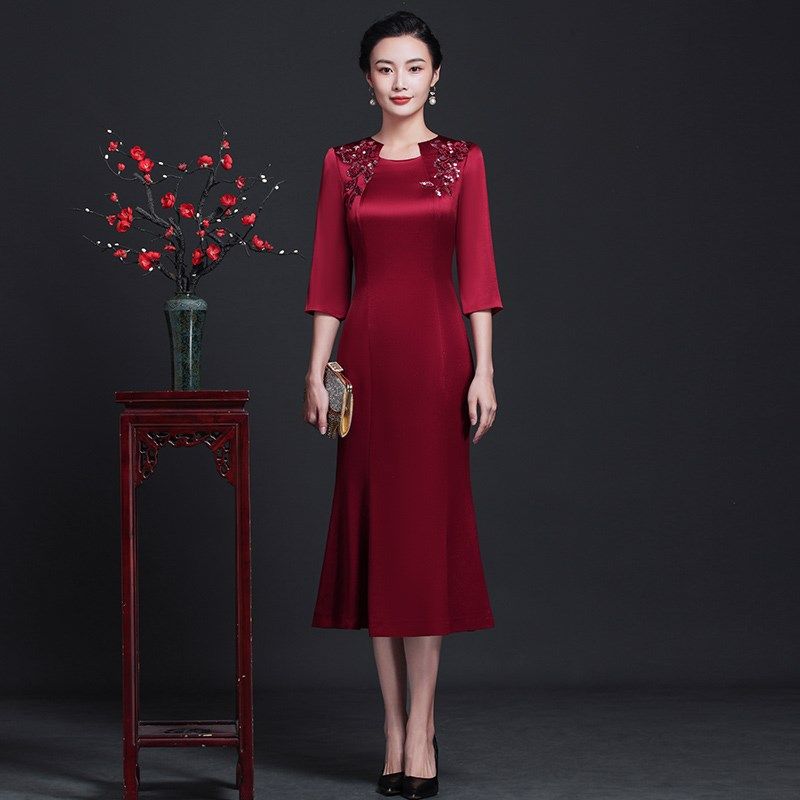 高端包臀礼服喜婆婆妈妈婚礼婚宴显瘦鱼尾连衣裙中长款2025新款