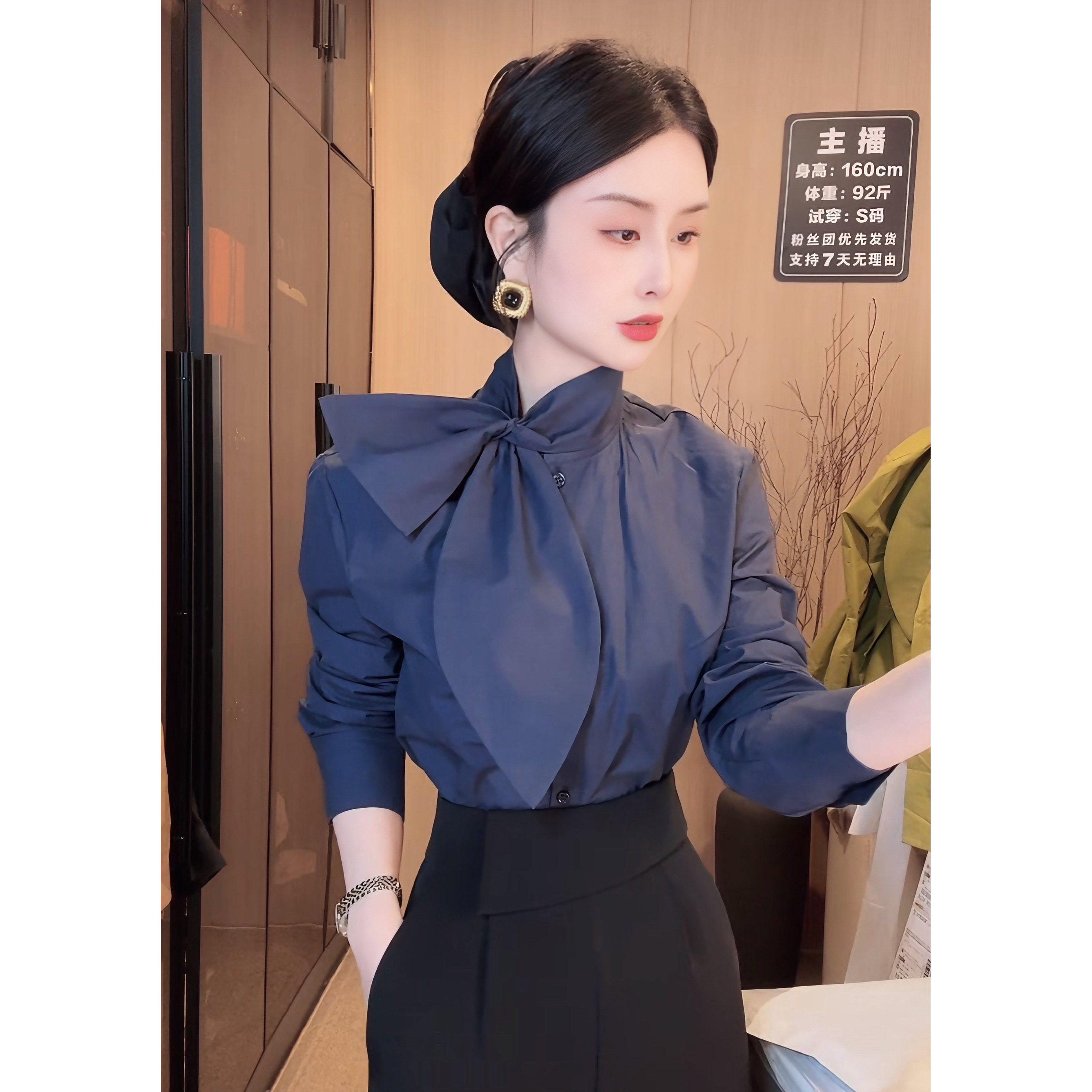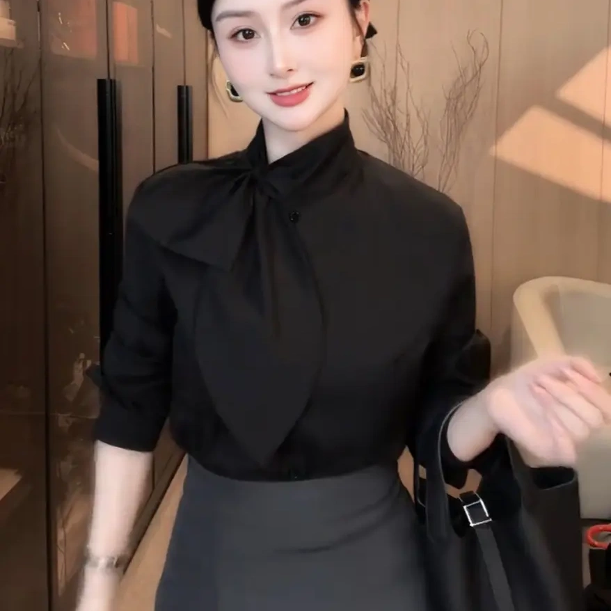 【欣欣精选】四季款设计感蝴蝶结长袖衬衫极简轻奢时尚上衣2793