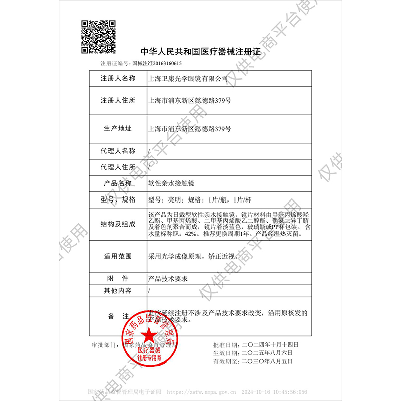 卫康亮明隐形近视眼镜年抛1片装轻薄透明旗舰店官方正品眼镜