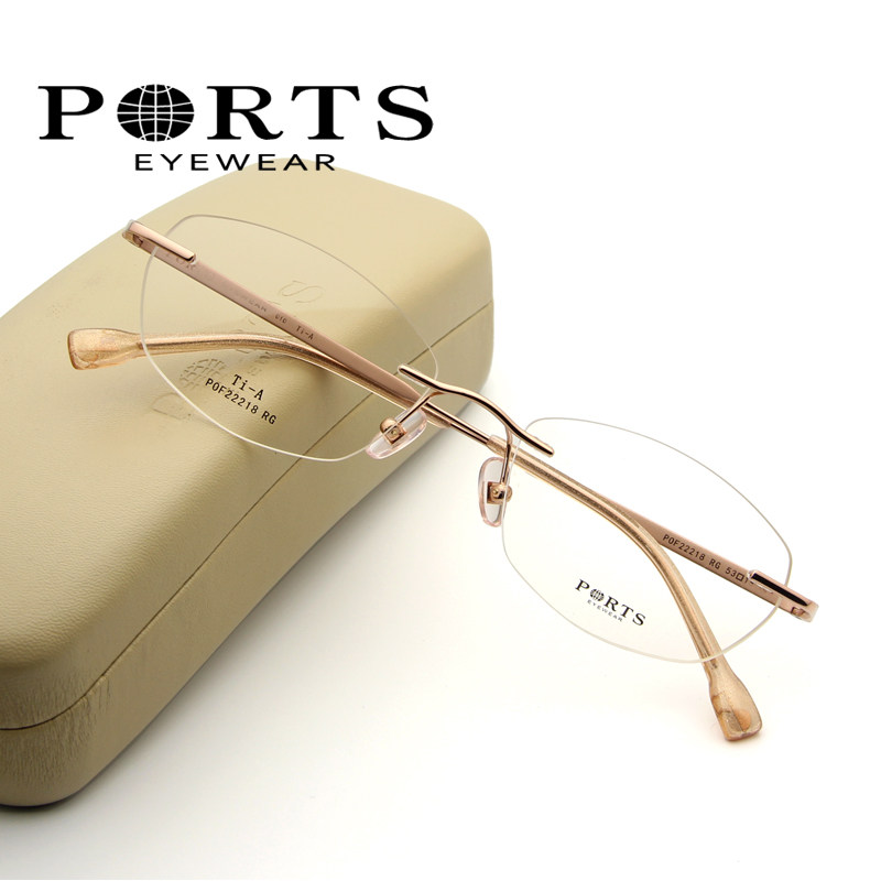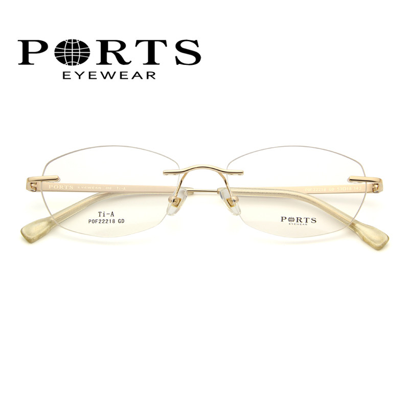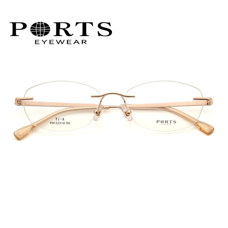 PORTS眼镜架女无框钛架轻舒适气质近视镜配镜框送镜片POF22218