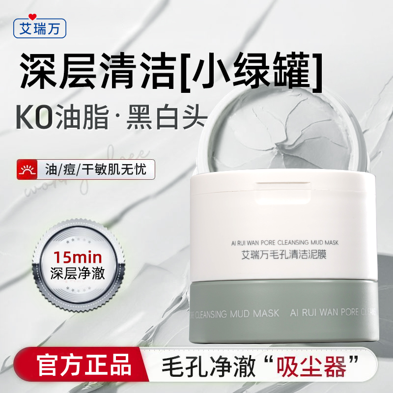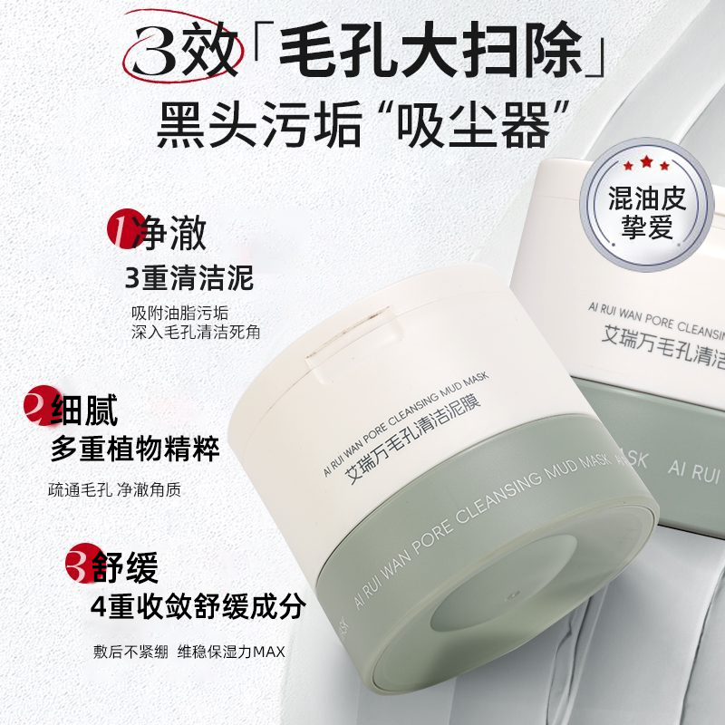 艾瑞万毛孔清洁泥膜去黑头闭口收缩毛孔深层补水涂抹式白泥面膜