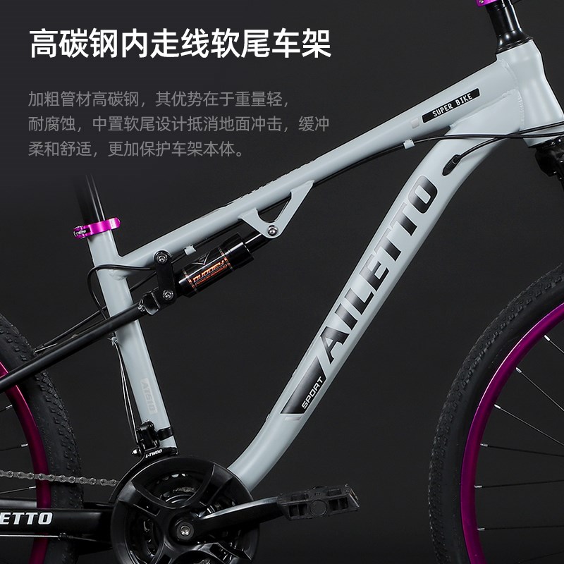 软尾山地车双减震越野变速男款女土坡单车双碟刹中学生通勤自行车