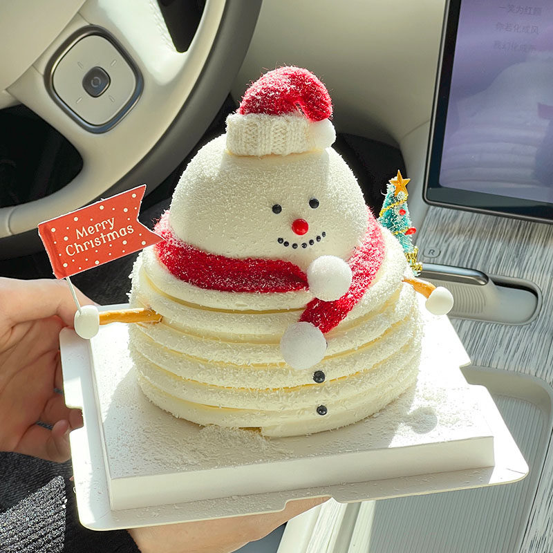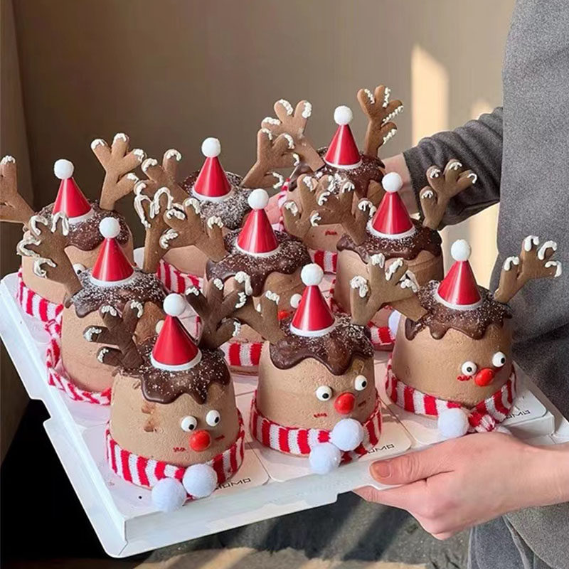 2025圣诞节迷你小围巾创意蛋糕甜品装饰摆件围巾毛线帽子小熊装扮