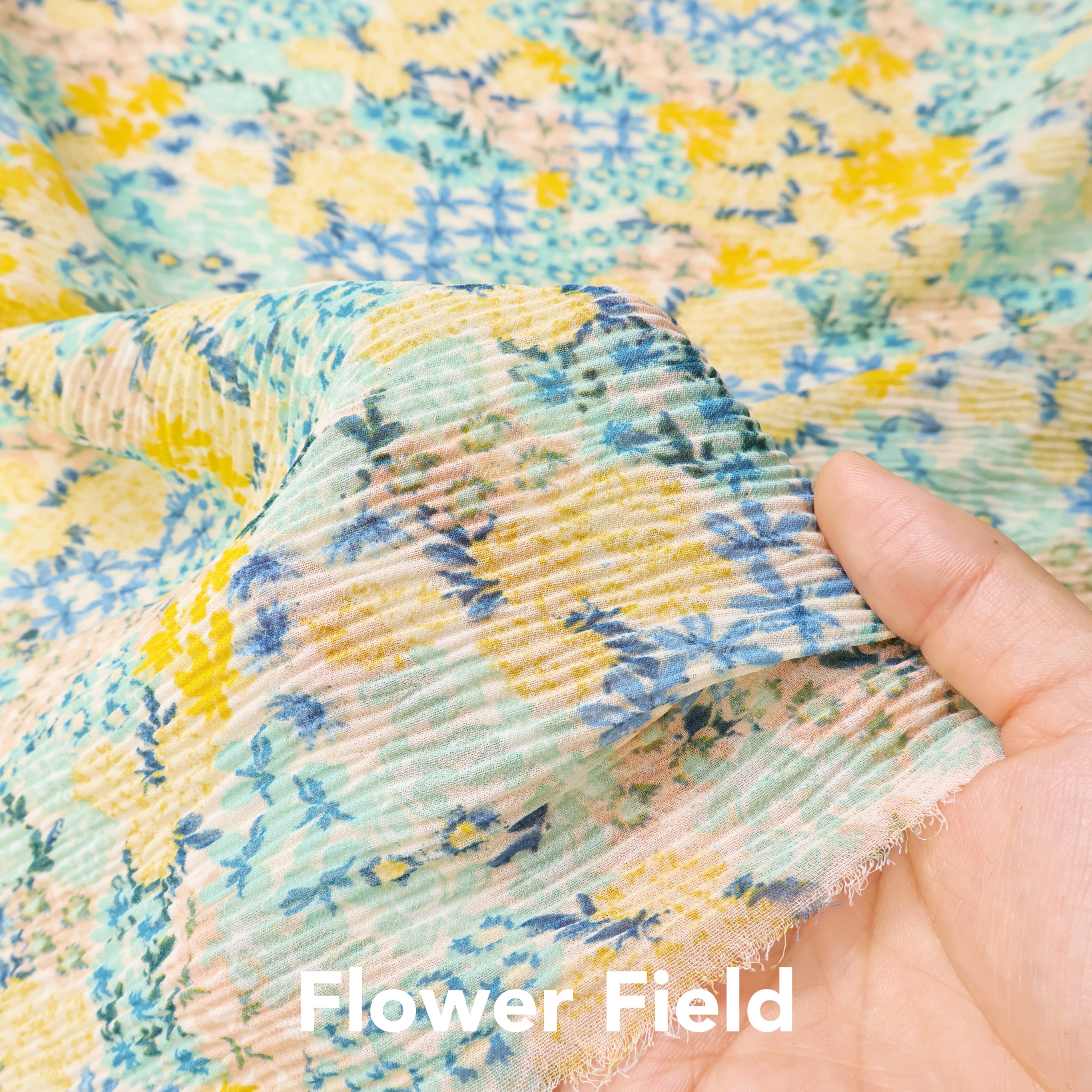 印花褶皱 蓝色系小碎花印花三宅一生弹力雪纺面料连衣裙布料DIY