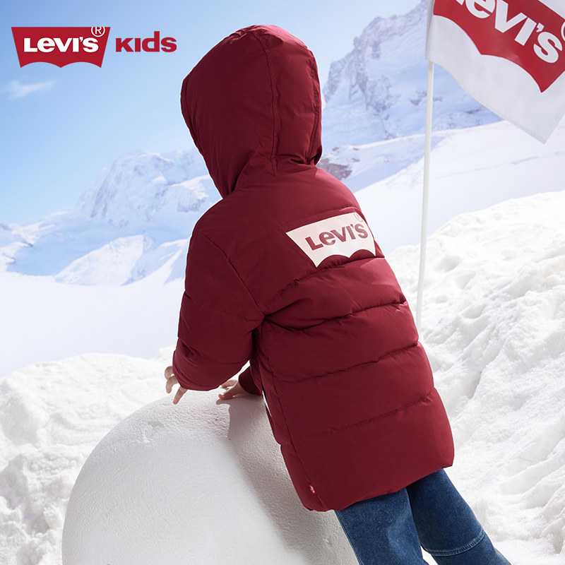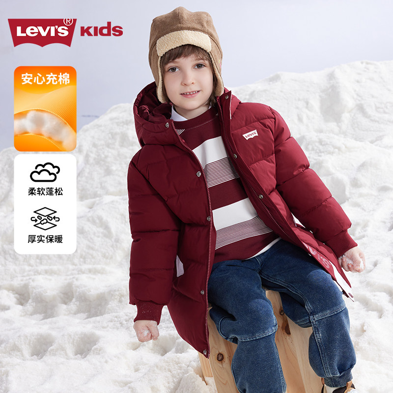 【新年红色】Levis李维斯儿童装男童长款棉服冬季童加厚外套女童