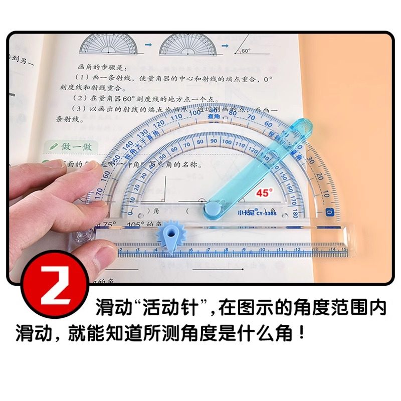 量角器小学生四年级四合一多功能活动角尺角的认识二五年级数学锐角钝角度量角器圆规直尺三角半圆尺画角神器