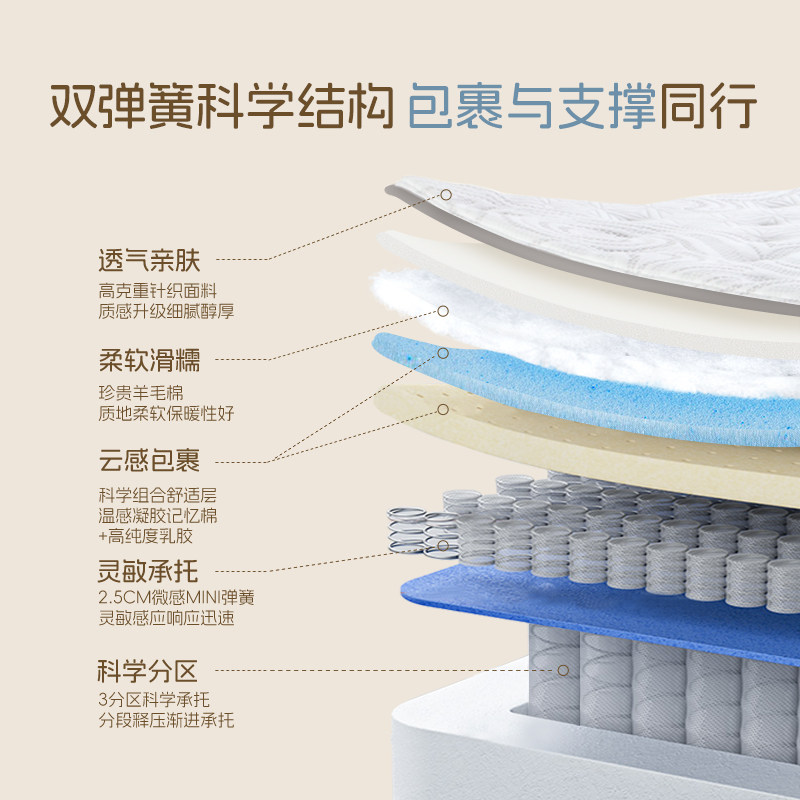 雅兰乳胶床垫云感舒适软硬适中三区双层微感弹簧床垫席梦思 云享