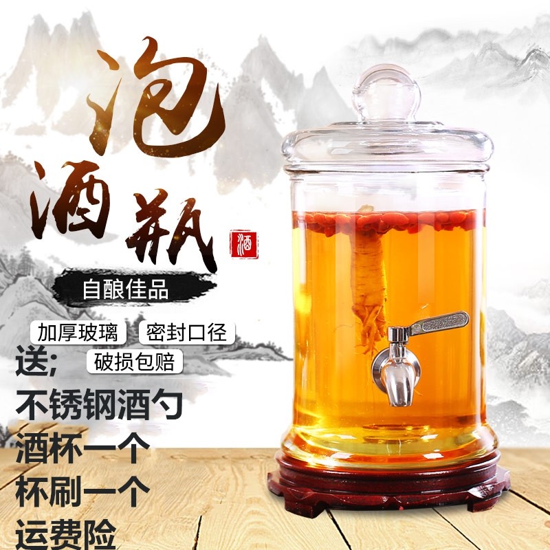 包邮5斤10斤装加厚泡酒瓶带龙头无铅玻璃酿酒容器人参瓶酒缸家用