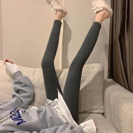 灰色打底裤女2024新款外穿秋季弹力加绒加厚紧身保暖高腰小脚裤子