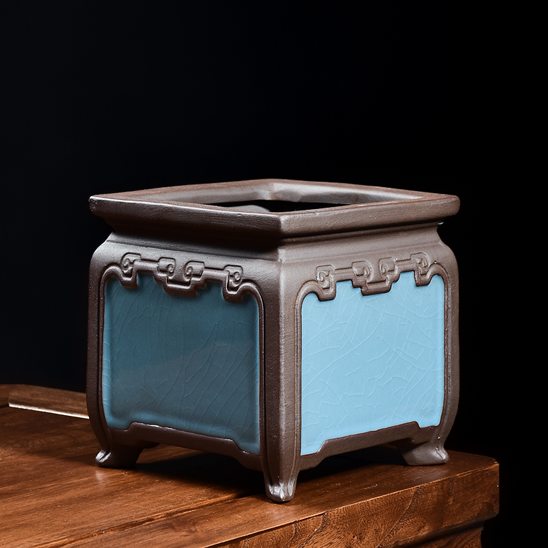创意中国风造景花盆陶瓷哥窑兰花吊兰盆紫砂四方高脚盆景盆栽大号