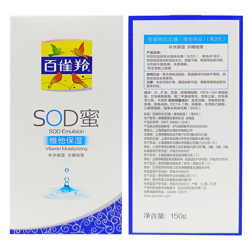 百雀羚SOD蜜*2瓶装150g芦荟补水维他保湿面霜男女身体乳正品
