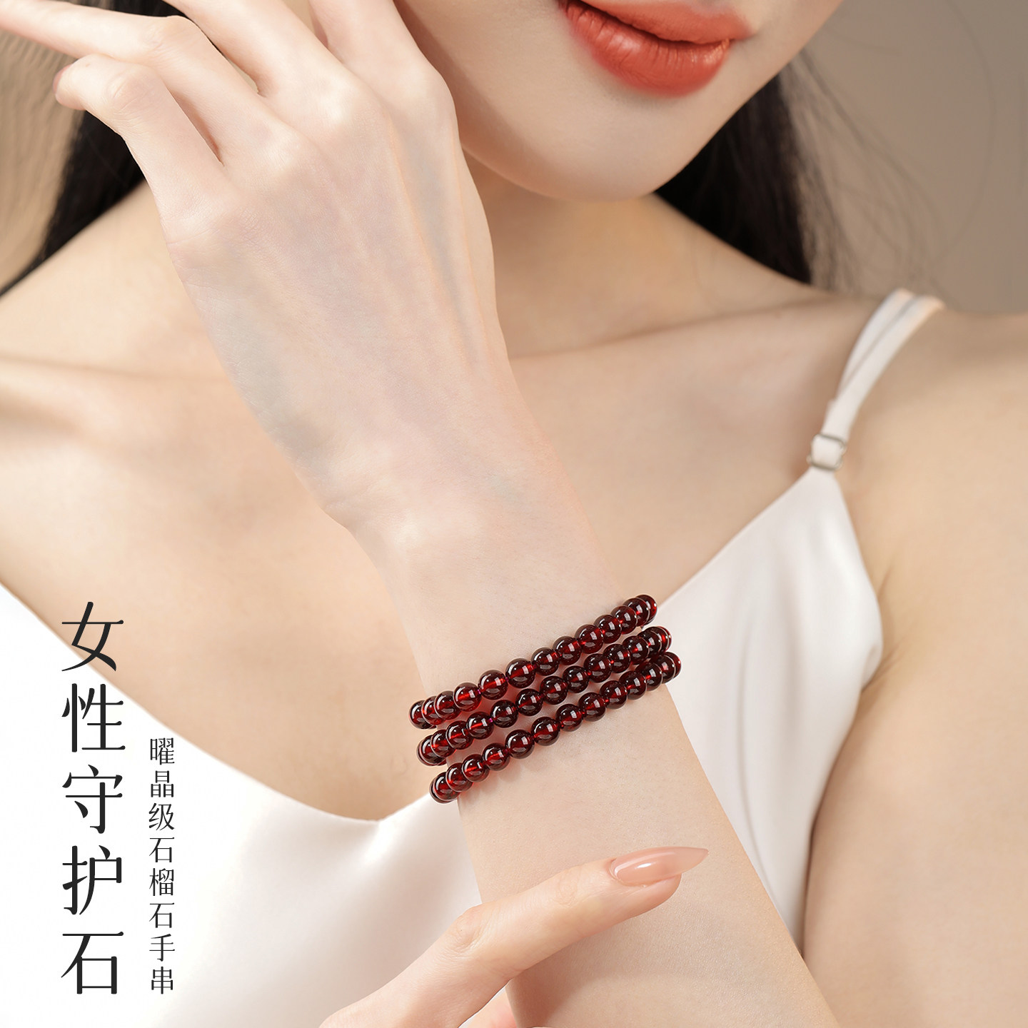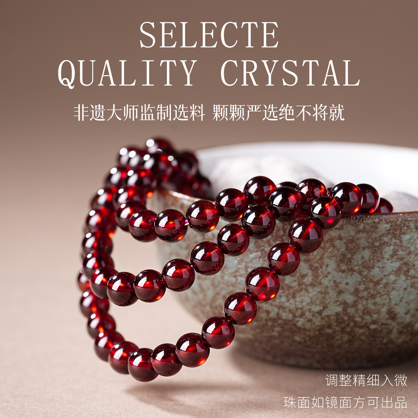 收藏级紫牙乌石榴石手链女东海水晶宝石单散珠子红色手串送女友