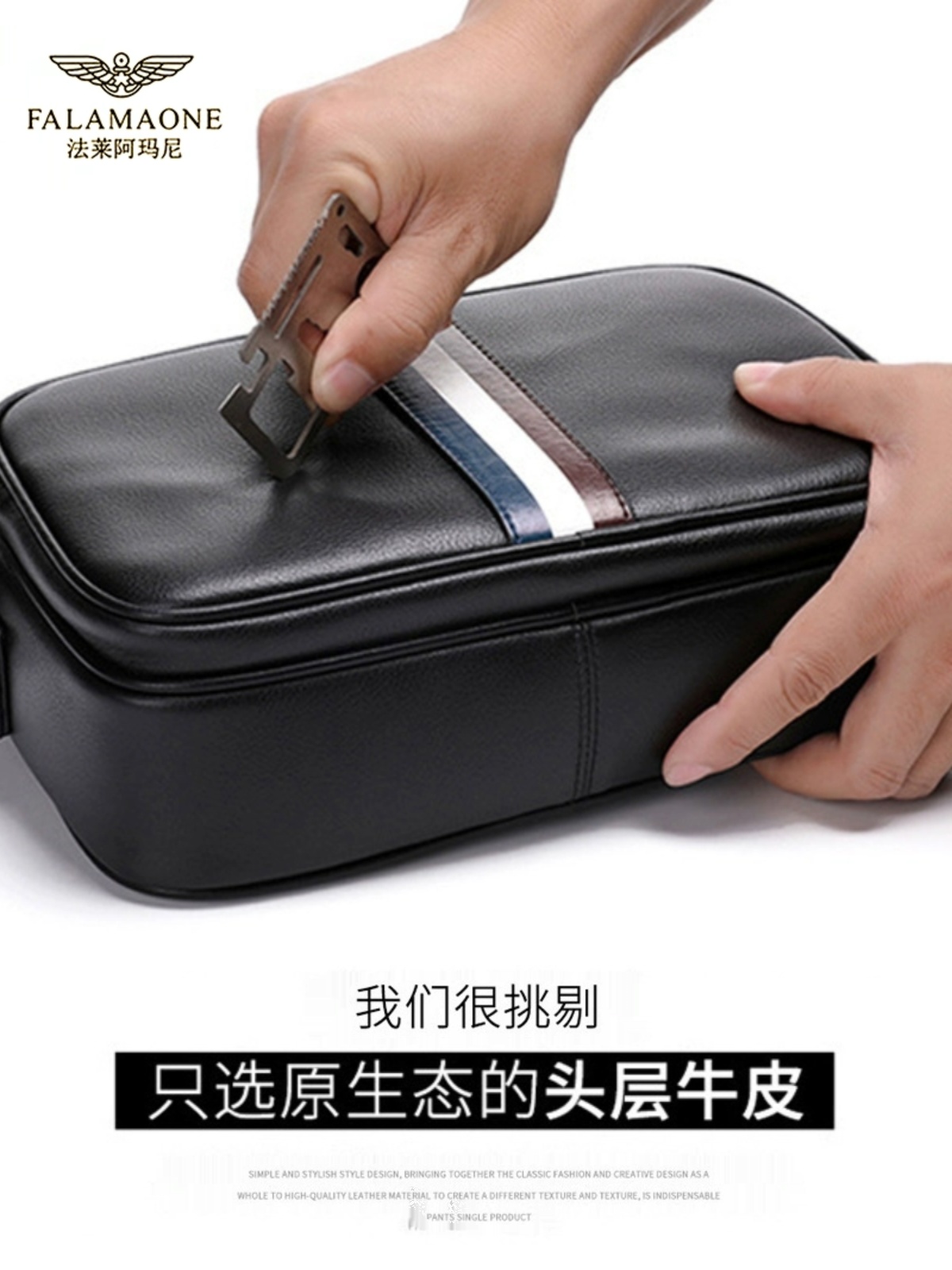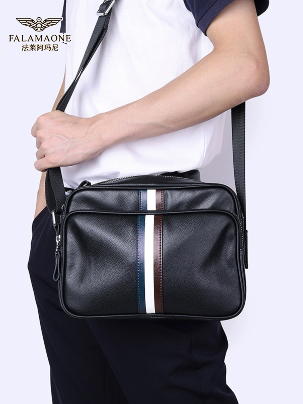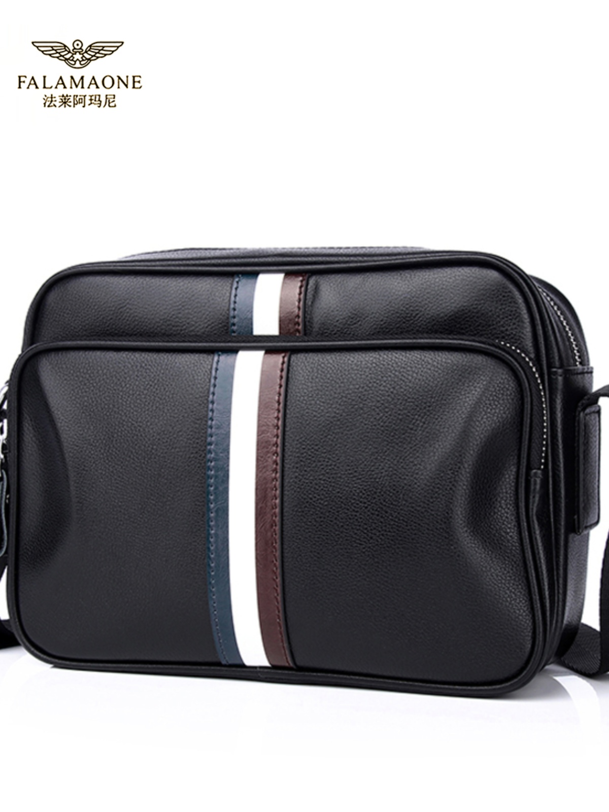 正品法莱阿玛尼男士单肩斜挎包真皮包袋公文包商务头层牛皮奢侈品