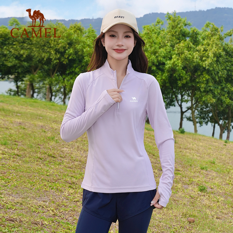 骆驼运动上衣女长袖速干防晒立领健身专业透气瑜伽服显瘦T恤女士