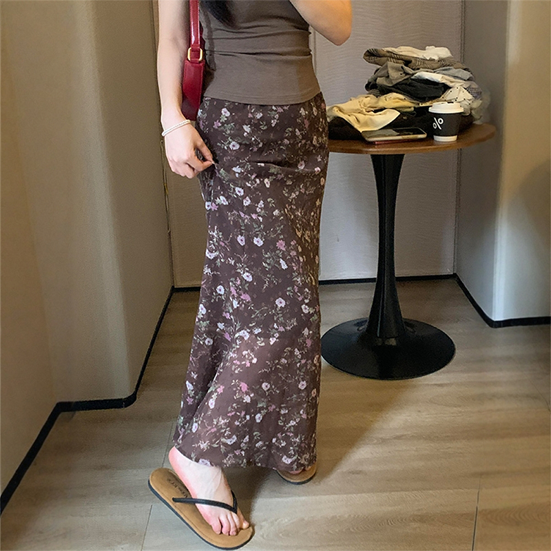 法式复古碎花雪纺半身裙女2025新款夏季大码胖mm显瘦直筒包臀长裙