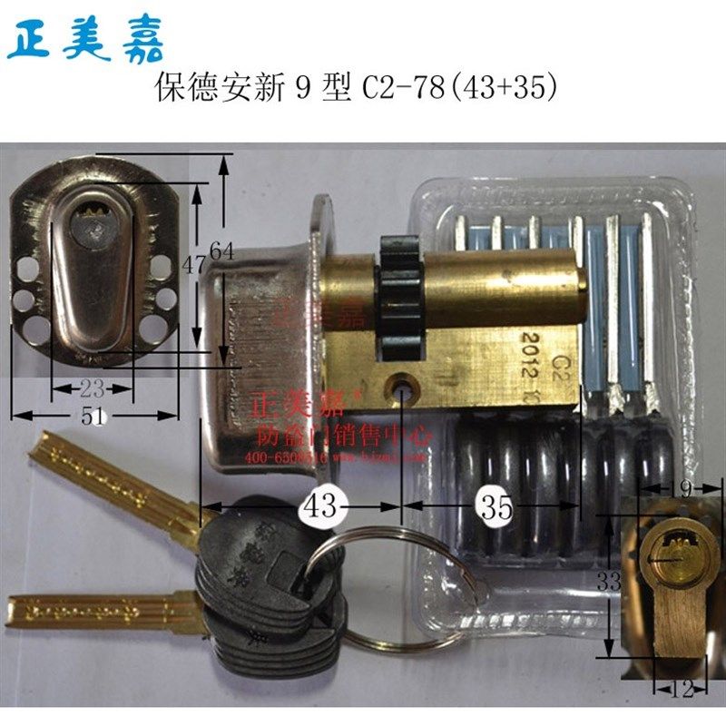 春天盼盼防盗门保德安新9型老款锁体 250X23圆头单孔齿轮锁芯锁体