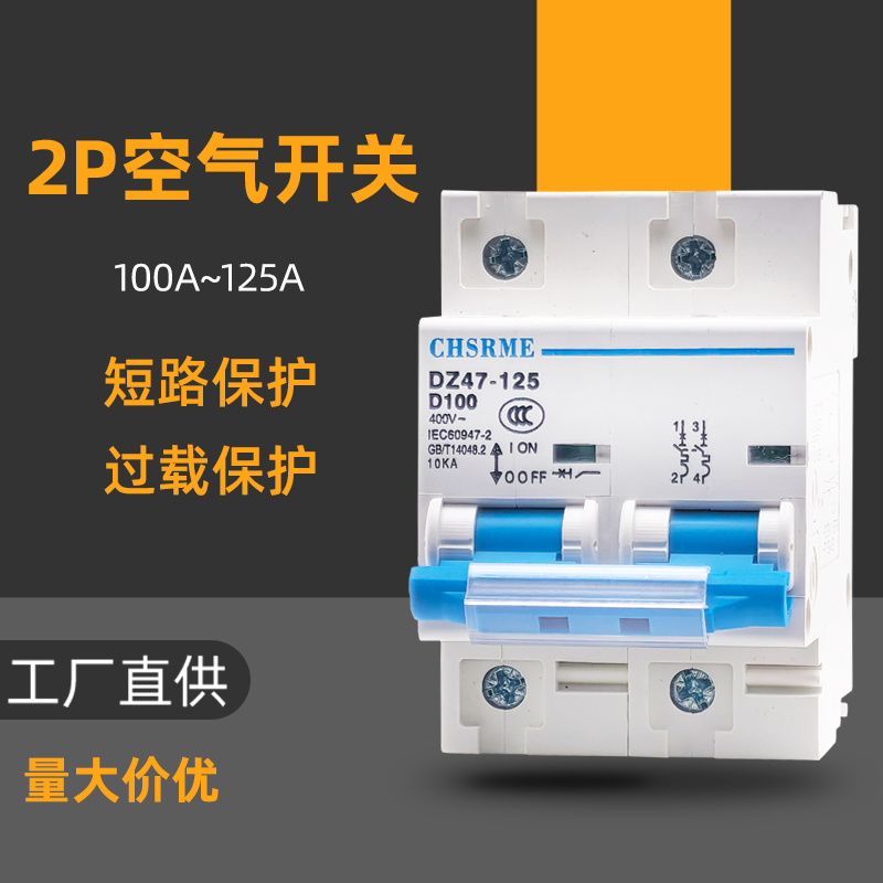 CHSRME家用DZ47空气开关2p空开3P小型断路器4P电闸热过载保护125A