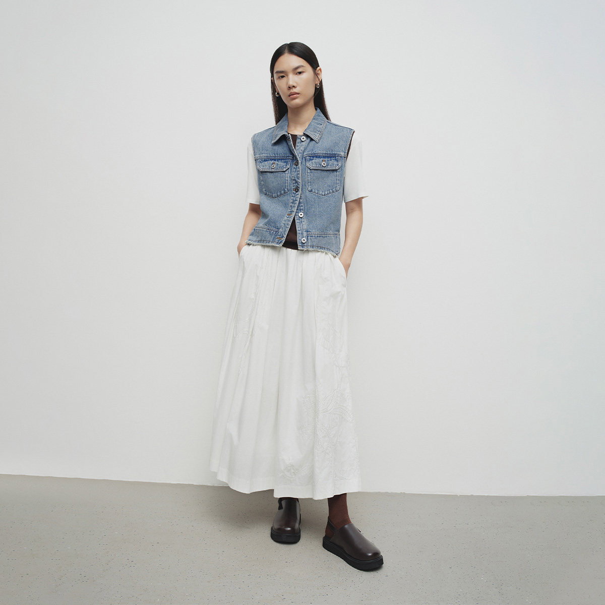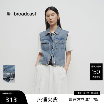 【播奥莱】播商场同款复古牛仔马甲女25春叠穿蓝色上衣BDS1MD1545