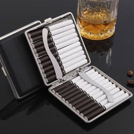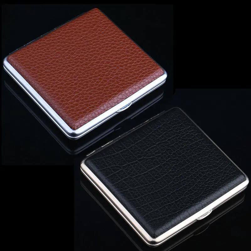 超薄创意男士烟盒20支装便携式皮质香菸盒金属烟夹防汗个性礼品