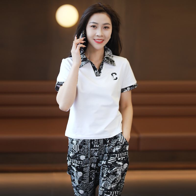 休闲运动套装女士2024新款夏季气质时尚洋气减龄短袖阔腿裤两件套