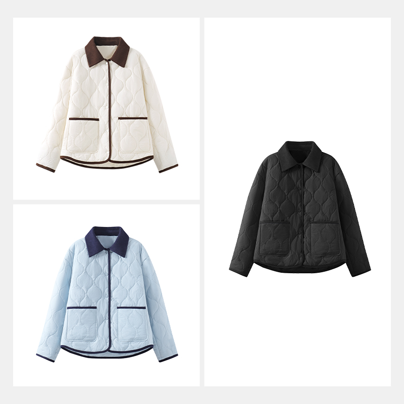 NOW真维斯轻薄棉服女款2025新款秋冬菱格衬衫领巨好看的夹棉外套