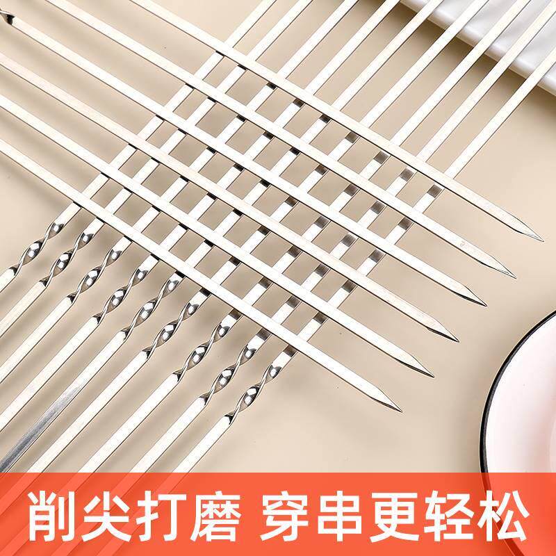 羊肉串烧烤铁签子不锈钢扁签烤肉用具签字烤串用品纤子商用批 发
