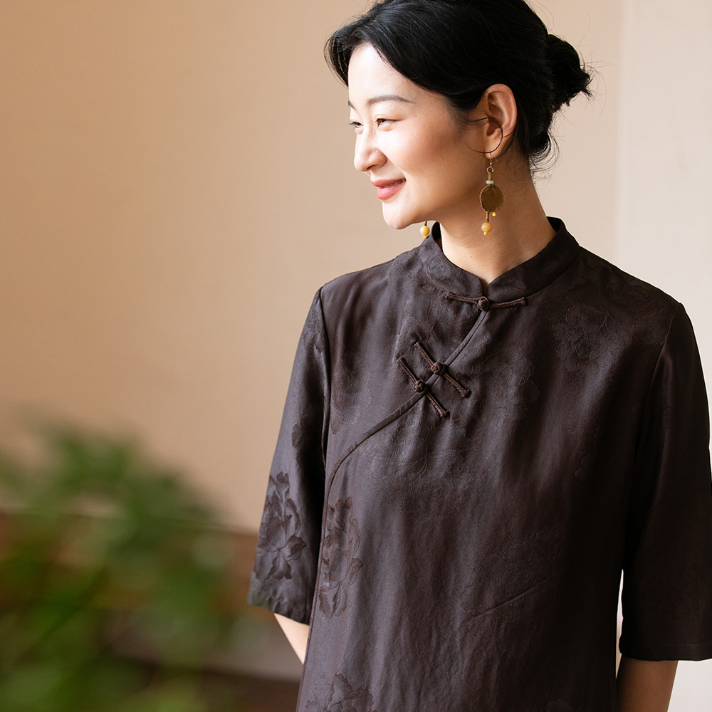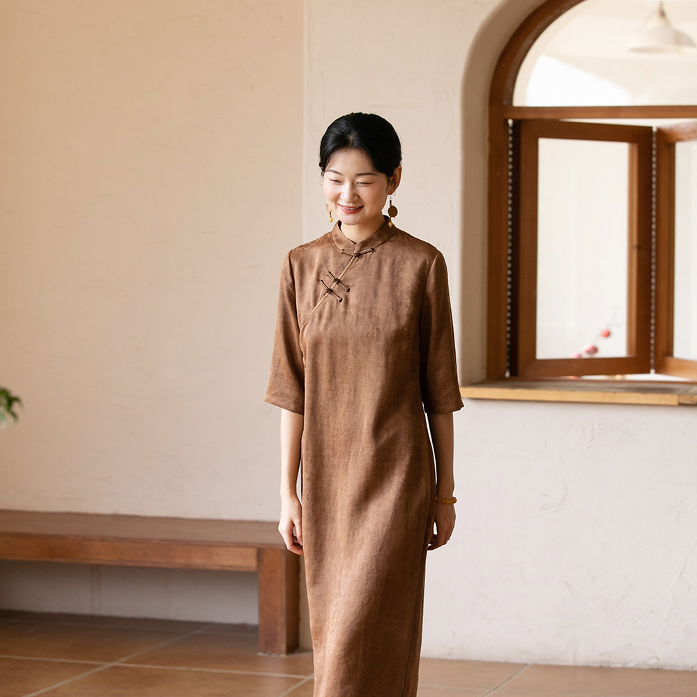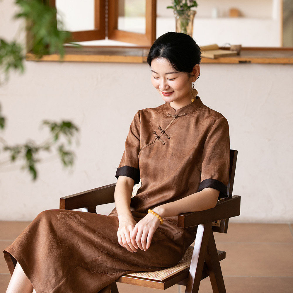 布小匠原创设计夏季新款桑蚕丝提花缎香云纱连衣裙真丝中式旗袍裙