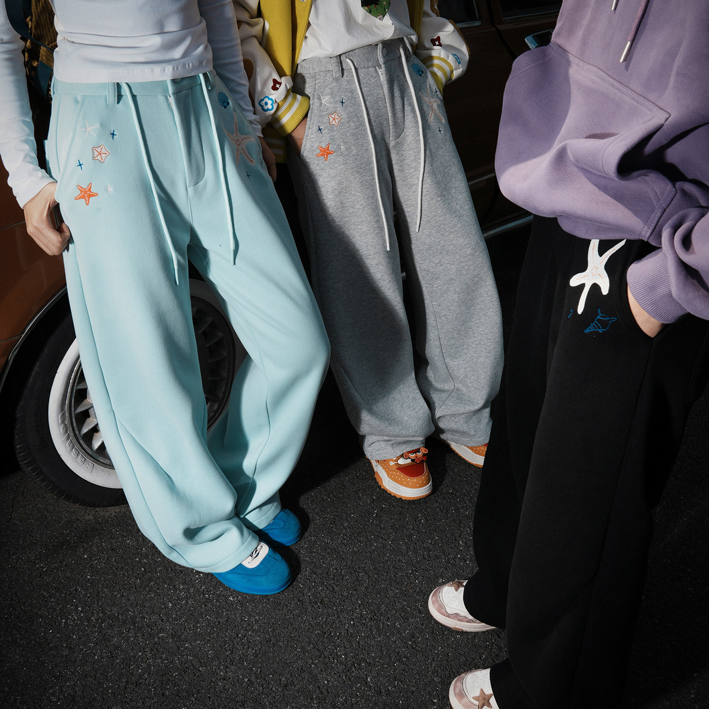 lemanism美式潮流纯色加绒卫裤男2025秋冬季新款情侣款休闲裤子