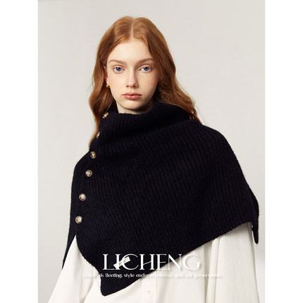 礼诚 时髦复古斗篷披肩一体围巾女秋冬护肩保暖百搭护颈针织围脖