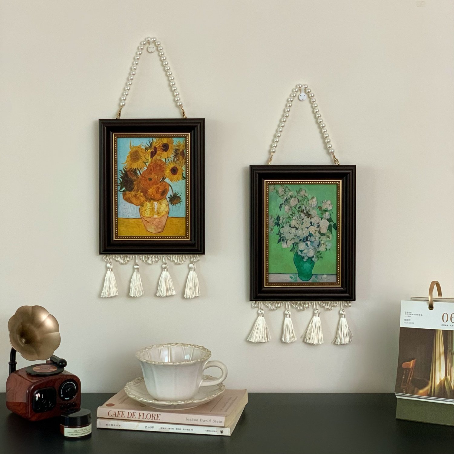 法式复古梵高莫奈油画装饰画珍珠相框餐厅卧室床头沙发背景墙挂画