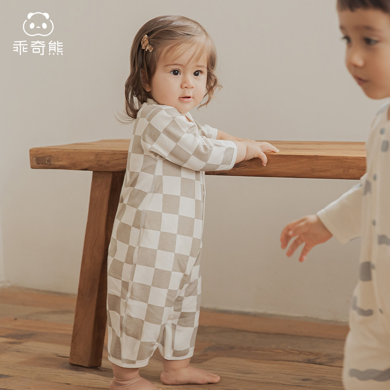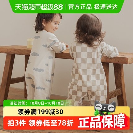 乖奇熊婴儿纯棉连体衣春秋季居家宝宝无骨长袖打底哈衣爬衣外出服