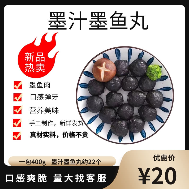 墨汁墨鱼丸手工鱼丸400g潮汕特产商用火锅食材烧烤麻辣烫花枝丸