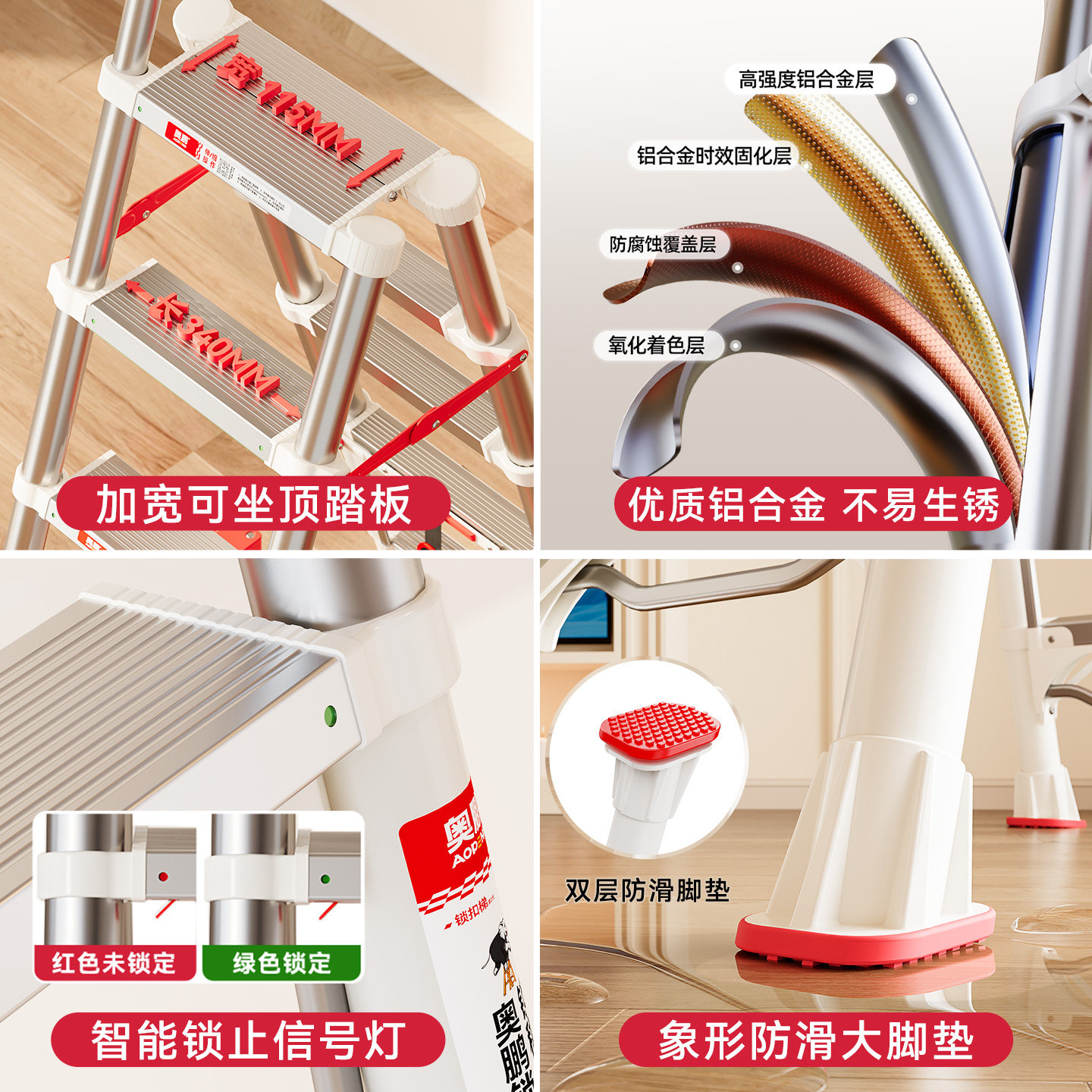 奥鹏锁扣梯家用伸缩梯子加厚铝合金折叠家庭升降人字楼梯