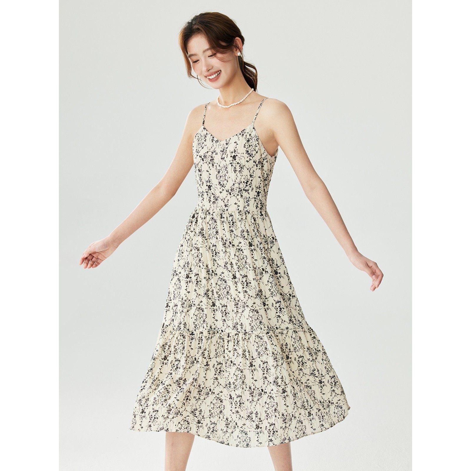 茵曼复古国风印花吊带连衣裙2025夏季文艺温柔风度假A字碎花裙子