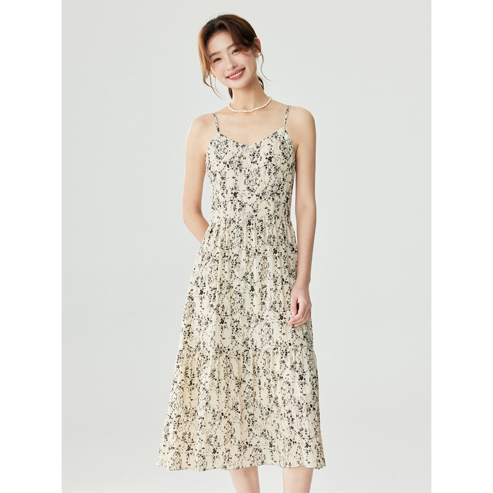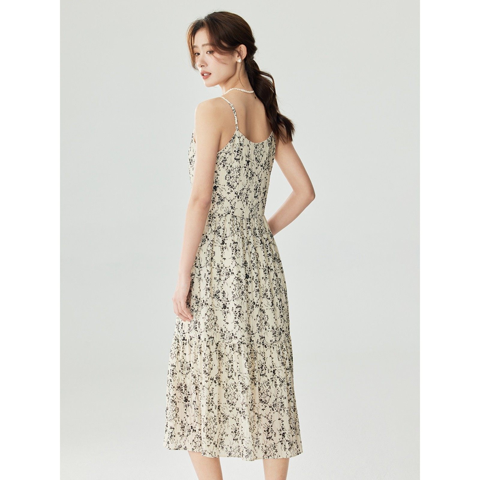 茵曼复古国风印花吊带连衣